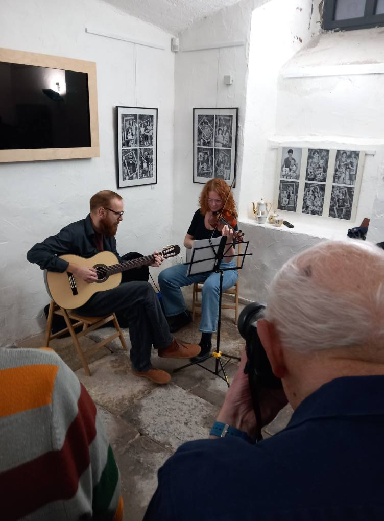 Mnozí účastníci vernisáže se na fotkách našli, další poznávali své známé a přátele. O hudbu se postarali pedagogové z trutnovské ZUŠ, o dobrou náladu všichni přítomní.