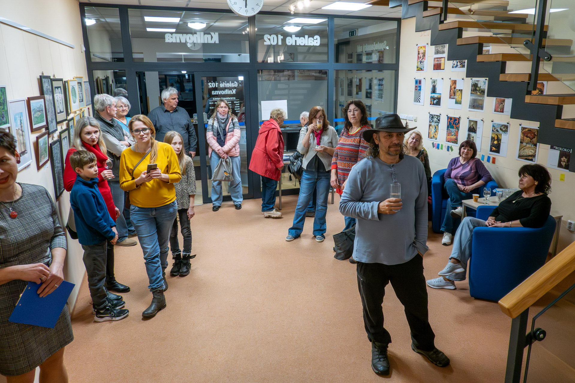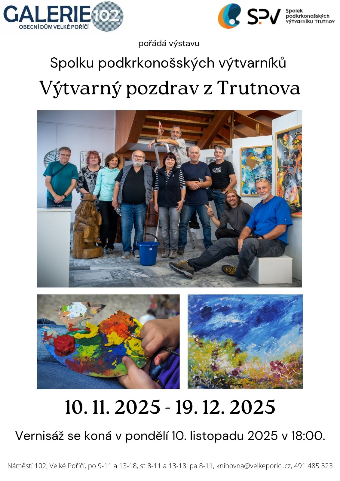 V pondělí 10. listopadu jsme vyjeli do Velkého Poříčí, abychom v místní knihovně - galerii 102 instalovali výstavu z našich děl.