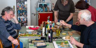 K obědu byl chléb s Pepovou vynikající škvarkovou pomazánkou, slunce nám svítilo na skicáky a vůbec panovala skvělá nálada.